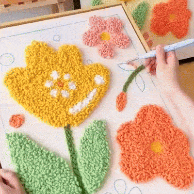 Chaque kit contient tout ce dont vous avez besoin : aiguille punch needle, toile, tambour à broder, pelotes de laine, modèle et guide. Vous n’avez rien à acheter en plus — vous pouvez commencer dès la réception du colis.